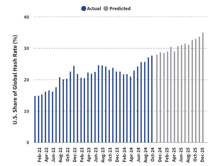 美国上市公司 Bitcoin 算力份额将达到 35%