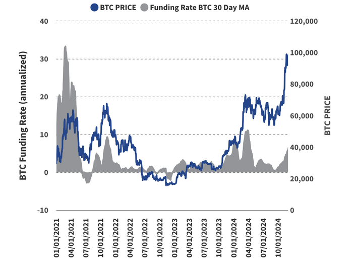 BTC 永续合约资金费率超过 10% 持续数月将是看跌信号