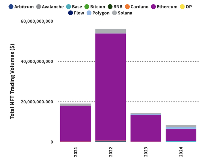 2024 年 NFT 交易量下滑,预计 2025 年反弹