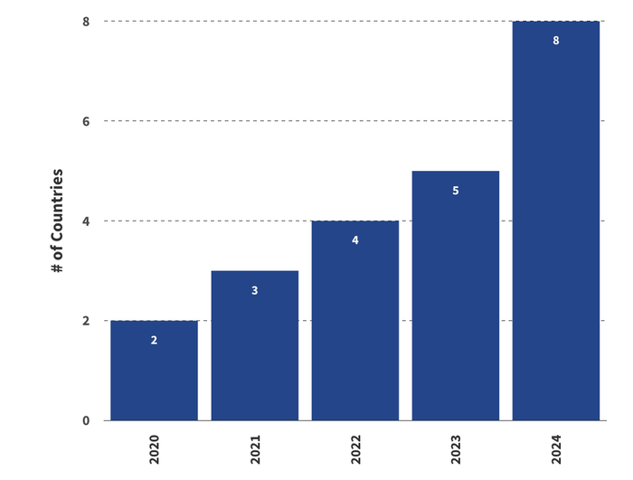 在 Bitcoin 挖矿方面,预计利用政府资源挖矿的国家数量将从目前的 7 个增至两位数,受 BRICS 国家采纳趋势的推动。俄罗斯明确表示将以加密货币结算国际贸易,进一步凸显 Bitcoin 在全球经济战略中的重要性。