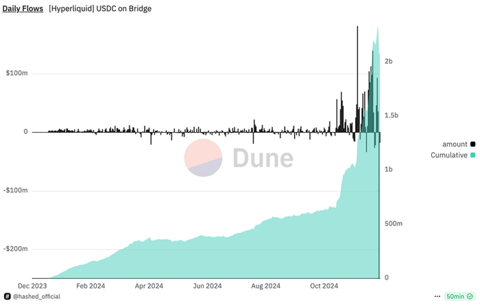 Hyperliquid 今日被社区广泛讨论的主要原因,是其桥接合约中潜在的安全隐患——23 亿美元的 USDC资产依赖 4 个验证者中的 3/4 多签机制 进行保护,同时又出现了多个已知的朝鲜黑客地址近期活跃于其平台的交易记录。导致社区出现部分恐慌性抛售,hype当日最高跌幅超过25%,市值蒸发最高超过70亿美金,链上生态资金出现超过1.5亿美元的出逃。