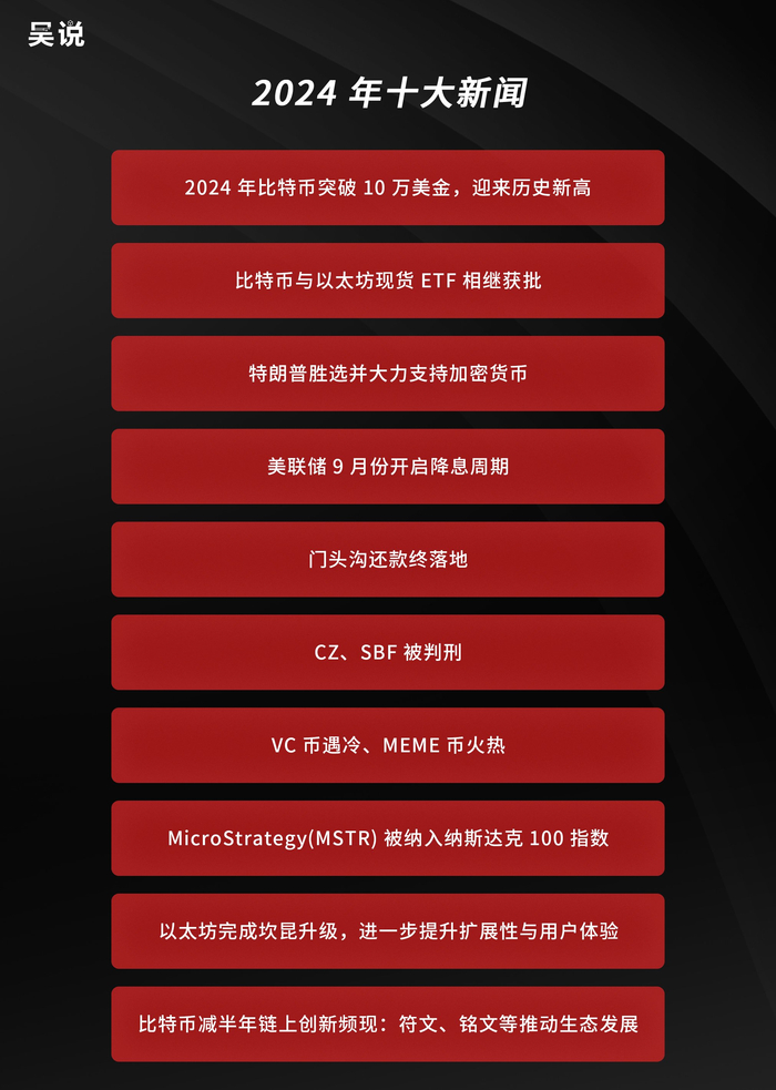 2024 年十大新闻:比特币突破 10 万美金、比特币和以太坊现货 ETF 获批、特朗普胜选并力挺加密货币与新闻 Top10