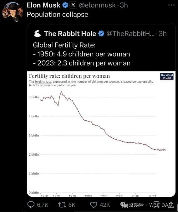 这些正在发生,等全部发生之后基本就讲到头了。但是黄金是人类几千年来的meme,全人类范围内的认可度很长一段时间仍然将比比特币高。改变的一种方式是等更信黄金的人死去,更信比特币的年轻人成长起来掌握话语权。然而本身黄金和比特币的价值存储属性又和经济总量相关,经济总量本质上是一个关于人口的经济函数,正如musk所说,目前新生出生率在崩溃中,就算更信比特币的年轻人掌权,人口不断下滑,也会导致所能存储的价值总量下滑。