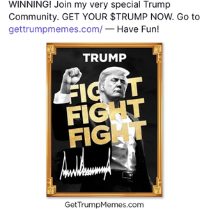 根据官网的描述,TRUMP发行于Solana链上,该代币是为了纪念2024年7月13日特朗普遭遇枪击劫后余生后高举拳头,喊出标志性的战斗口号 “FIGHT FIGHT FIGHT”的形象,官网还表示“这是本世纪最令人难以忘记的MEME。”