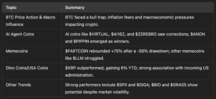 通胀担忧:1月10日发布的强劲就业市场数据(NFP报告)显示潜在通胀压力,这可能导致更少的降息,成为股市和加密市场的利空信号。