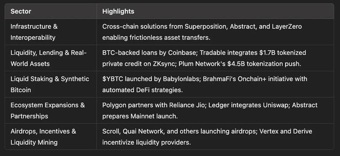 从流动性质押和生态合作到用户激励,当前行业的焦点在于通过创新和战略提升用户体验和参与度。这些发展不仅推动了基础设施的完善,也标志着DeFi正逐步走向更成熟、更高效的阶段。