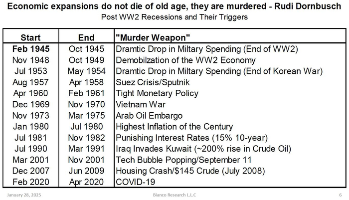 这是现代二战后美国经济衰退的直接原因列表。衰退被定义为季度环比 GDP 负增长。笔者特别关注 1980 年代至今的情况。