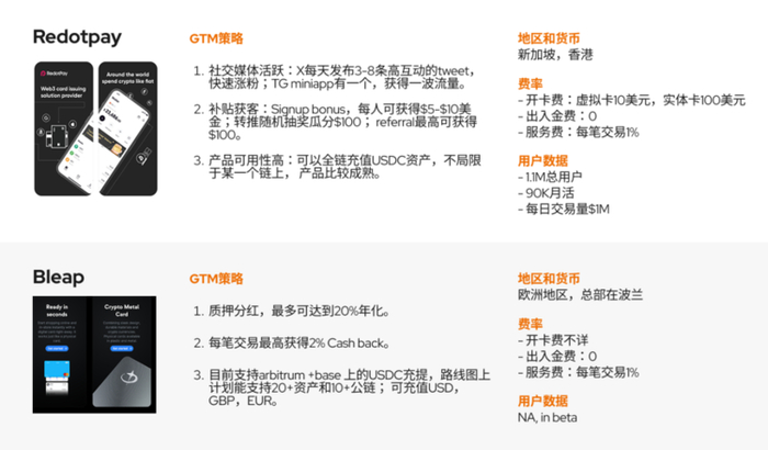 • Reap:亚洲发卡商,客户包括Infini, Kast, Genosis pay, Redotpay,Ether.fi等40多家企业,卖白标解决方案,主要靠交易额抽成(如Kast 85%-Reap15%)跟香港银行合作,可覆盖美国以外大部分地区,可支持多链deposit; 2024年7月交易额达$30M .