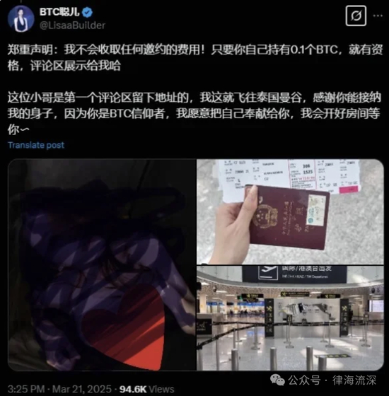 犯罪团伙通过推特账号“比特币聪儿”伪装成年轻女性加密货币交易员,以提供肉体交易为诱饵,与王树建立联系。经过数月交流,双方约定于2024年12月1日在成都某高端酒店见面。然而,当王树进入房间后,自称“聪儿朋友”的李少林带人闯入,以伪造的“证据”威胁其名誉,并强迫王树通过手机应用当场转账全部6枚比特币(价值40万美元)。作案后,犯罪团伙迅速逃离,而“比特币聪儿”的社交媒体账号仍在持续发布引诱信息。目前,警方已介入调查,并警示公众警惕此类针对虚拟货币持有者的骗局。