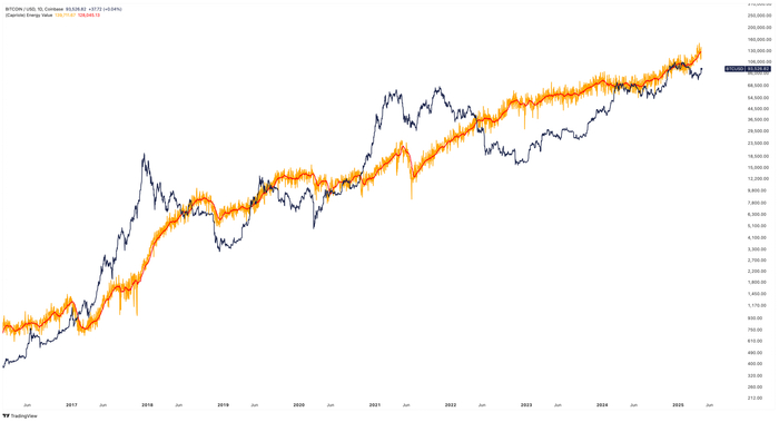 在X平台上的一篇最新帖子中,Edwards指出,自2024年4月的比特币减半事件以来,区块奖励减少至3.125 BTC,比特币的“能源价值”——这一估算基于挖矿成本和能源消耗——达到了130,000美元。