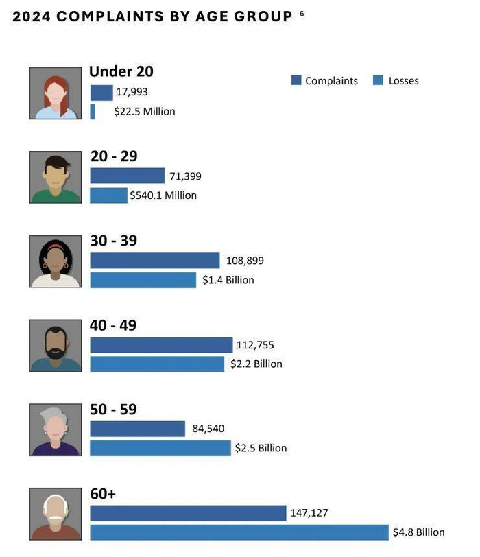 - 60 岁以上:147,127 起投诉,损失 48 亿美元。