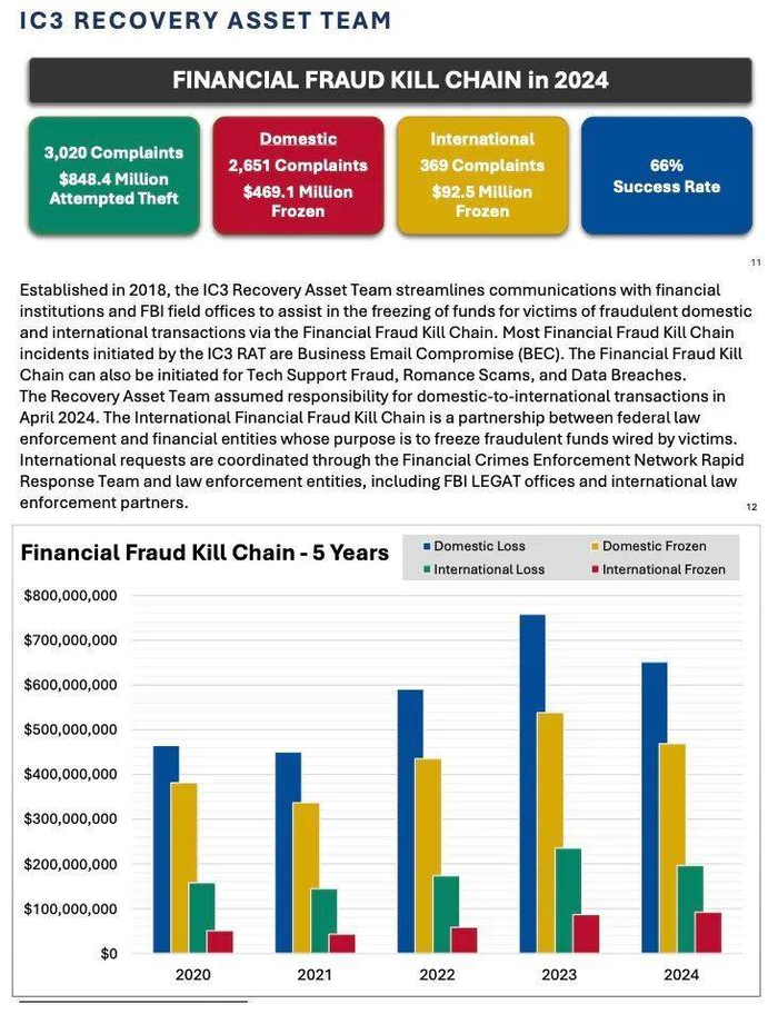 - FFKC 团队共处理 3,020 起冻结请求,冻结资金 5.6 亿美元,追回成功率为 66%。