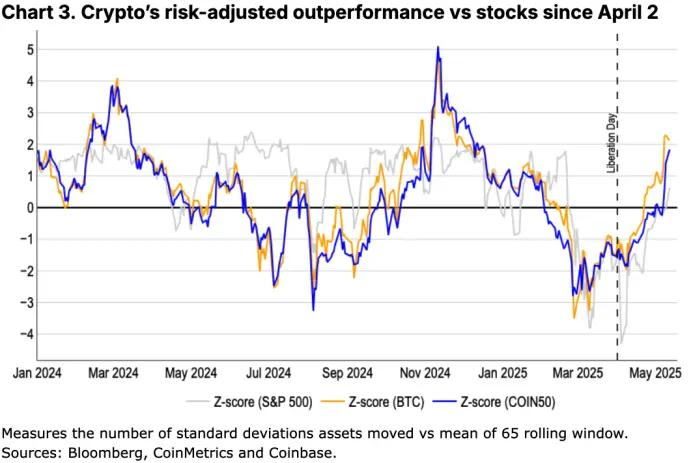 但问题在于,替代方案在哪里?当货币体系经历根本性变革、货币价值的基础被重新定义时,黄金以及近年来受到广泛关注的比特币等储值资产往往变得尤为重要。事实上,近几周,比特币‘数字黄金’的定位日益清晰,特别是在风险调整后表现优于美股的背景下,其价值优势更加凸显。Coinbase 资产管理公司在一份最新报告中指出,未来十年,全球储值资产市场可能将从当前的 20 万亿美元增长至 53 万亿美元,预计年均实际回报率(经通胀调整)可达 6%。