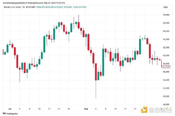 去年 7 月,在田纳西州纳什维尔举行的 2024 年比特币大会为 8 月初的突然下跌奠定了基础,导致 BTC/USD 从 70,000 美元下跌 30% 至 49,000 美元。
