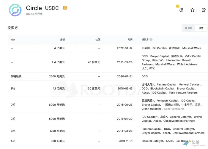 事实上,这场上市更像是十二年沉淀的集中爆发。据 RootData 数据显示,Circle 自 2013 年成立以来,已完成过 8 次融资,总融资额达到 11.11 亿美元。背后股东包括高盛、Accel、General Catalyst、Fidelity 等一线机构。如今,IPO 不仅是资本兑现的出口,更是一次身份叙事的升级与确权。