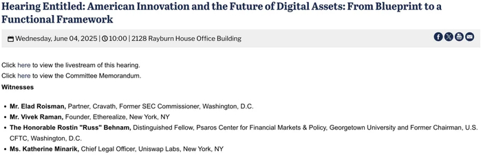 近期,Etherealize 创始人 Vivek Raman 受邀出席国会众议院金融服务委员会,关于“美国创新与数字资产未来”的听证会,继续扩大 Ethrealize 与监管交流的重要作用。