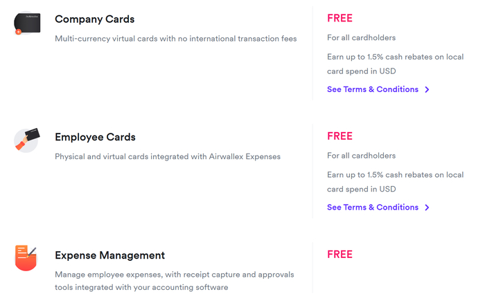 企业卡和费用管理方面,Airwallex 为客户免费提供虚拟 / 实体多币种卡,无月费或交易费;附带的费用报销与管控软件目前在多数地区也是免费的,以提高用户使用率(个别地区如香港曾对高级报销功能收费每卡每月 HK$40,后续版本中已取消此费用)。