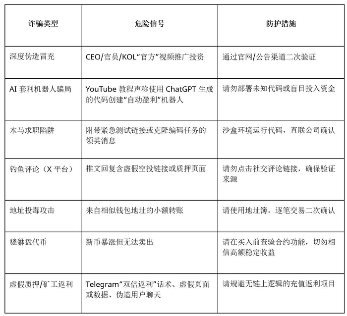 总之,AI 时代的加密诈骗已从单纯“技术漏洞利用”升级为“技术+心理”双维操控。用户既要提高技术识别能力,也要加强心理防御: