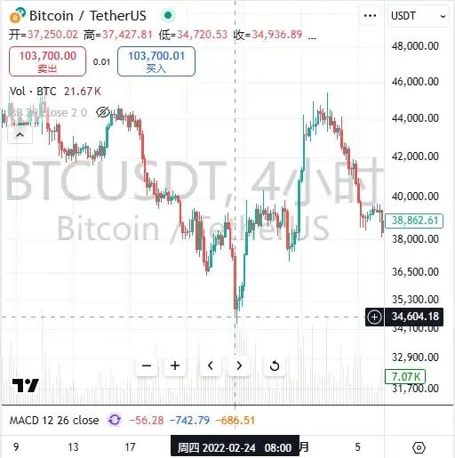 2 月 24 日,普京宣布对乌克兰开展‘特别军事行动’,比特币价格大幅下跌,全球股市与加密货币迎来黑色星期四。截至 2 月 24 日 18 时,比特币从约 39, 000 美元暴跌至 35094.2 美元, 24 小时跌幅为 10% , 7 天以来跌幅为 20.4% 。