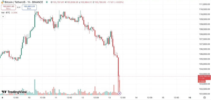 冲突爆发后,比特币短时跌破 102, 000 美元, 24 小时跌幅达 5% ;以太坊短时跌破 2500 美元, 24 小时跌幅达 9% 。