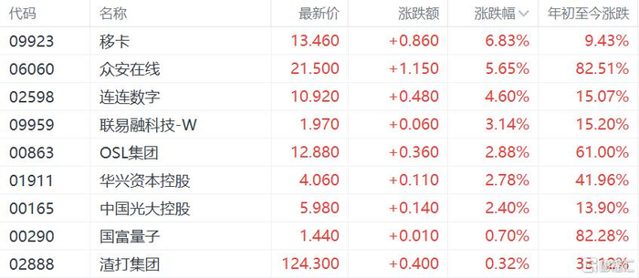 今日,港股市场的稳定币概念表现强势,其中,移卡涨近7%,众安在线涨超5%,连连数字涨超4%。