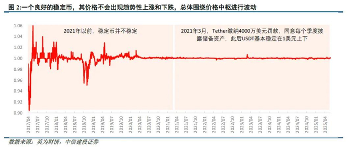 稳定币的第二面——锚定法币带来的币值稳定特征。
