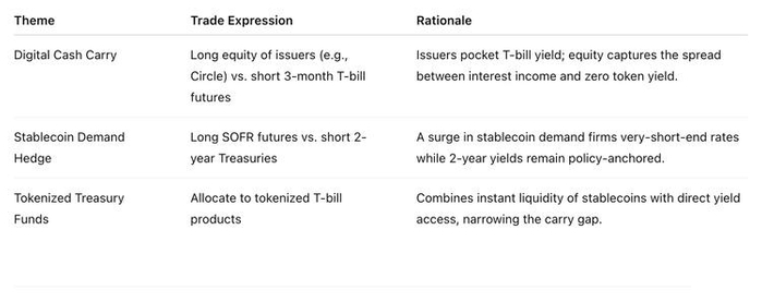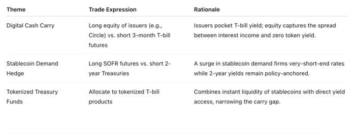 对传统投资者:关注稳定币发行方的股权及其与储备资产收益相关的结构化票据;