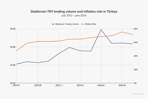 图表7:土耳其的稳定币交易量和通货膨胀率有明显的正相关性