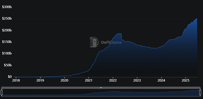 市场对稳定币的未来发展潜力较为乐观。美国财政部借款咨询委员会(TBAC)2025年4月报告中引用了渣打的预测,稳定币市值可能从2025年的2000多亿美元增至2028年的2万亿美元,对应年复合增长率(CAGR)约65%。