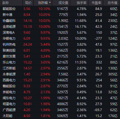 电力股震荡拉升,韶能股份、新中港、金房能源、华银电力等多股涨停。