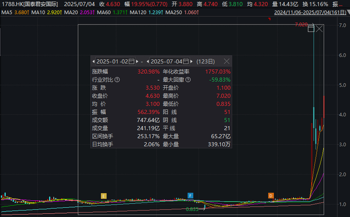 今年以来,国泰君安国际累计大涨320%。