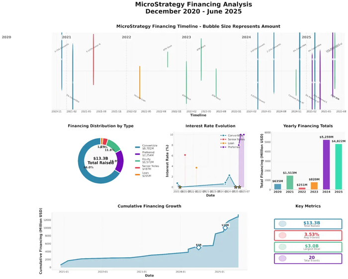 MicroStrategy 创造了一套资本工具矩阵,将比特币的波动性转化为结构化融资优势,资本运作采用多种融资策略,形成自我强化的资本循环。VanEck 分析师评价其为 “数字货币经济学与传统公司金融结合的开拓性实验”。