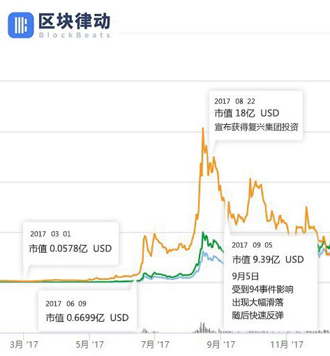 不过小蚁 40 美元以上的价格并未持续,伴随 94 事件的影响,在 2017 年 9 月 5 日,NEO 跌至 18.78 美元的历史新低点。