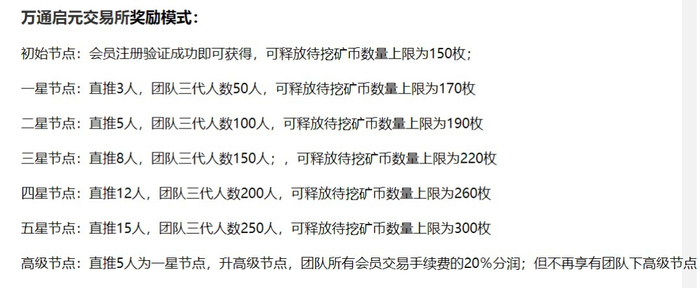 其四,传销式激励体系。用户是交易所的“衣食父母”,几乎所有交易所都会推出“拉新返佣”激励体系,但在去年跑路的交易所中,有相当一部分交易所直接采用了传销式的激励体系。其中最典型的是万通启元交易所,通过“交易挖矿释放佣金”的传销模式,在短短两个月内吸引了30多万会员入金。