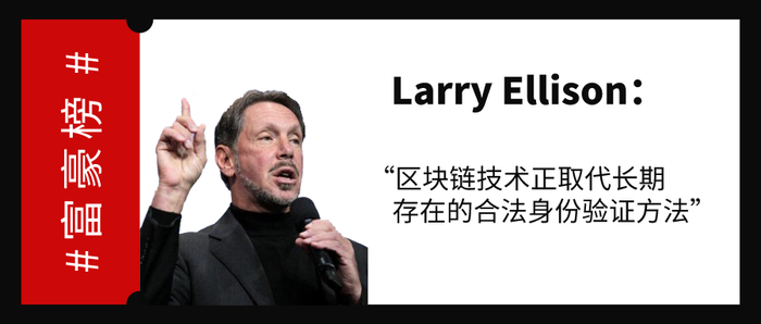 拉里·埃里森(Larry Ellison)是全球第二大软件制造商“甲骨文”创始人、总裁兼CEO,身家超过500亿美元,被列为全球第七大首富。其是极少数对比特币及区块链技术发表正面评价的亿万富翁之一。