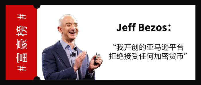 据2019年《福布斯》(Forbes)榜单显示,杰夫·贝佐斯(Jeff Bezos)是全球首富,净资产为1300亿美元。其实亚马逊的创始人,被称为“电子商务巨人”,曾被传投资了比特币。