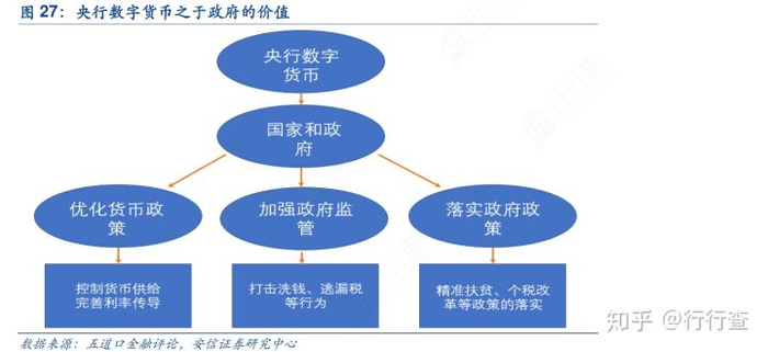 数字货币体系的建立,通过中心化的作用,本质的方法是取消第三方虚拟账户作为资金存储的渠道,令大额资金始终处于银行监管体系内,确保资金安全相对私人数字货币完全去中心化的特性。