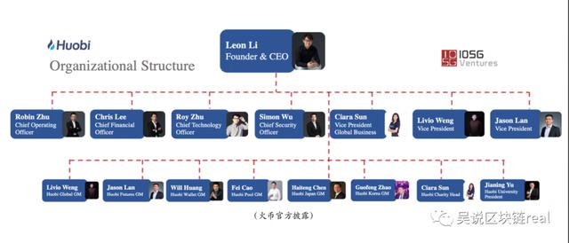 我们与火币的高层组织架构比较,会发现有一些相同与不同之处,参考《独家:原阿里高管朱烨出任火币新CTO 火币高管全员首度曝光》