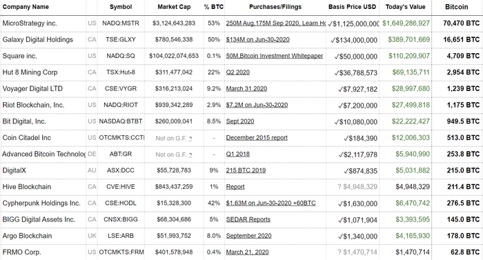 支付巨头Square也在今年斥资5000万美元购入比特币。其他投资比特币的上市公司还包括Grayscale、Hut 8、Voyager Digital、Riot Blockchain、Bit Digital、Coin Citadel、Hive Blockchain等。