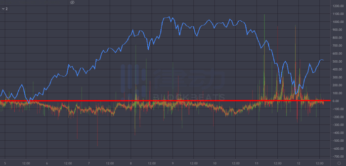 从上图可见,从 1 月 11 日凌晨起,Coinbase 的比特币开始呈现负溢价,随后比特币价格从 3.8 万美元下跌至 3.25 万美元。Coinbase 最低负溢价出现于北京时间 1 月 11 日凌晨 4 点,负溢价超 1000 美元。这证明有投资者正不计成本通过 Coinbase 抛售比特币。当比特币开始回升时,Coinbase 负溢价被抹平,并开始正溢价。