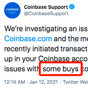 按照 Coinbase Support 官方对问题的描述,用户交易时会有延迟,尤其是当用户进行买单交易时,会出现问题。