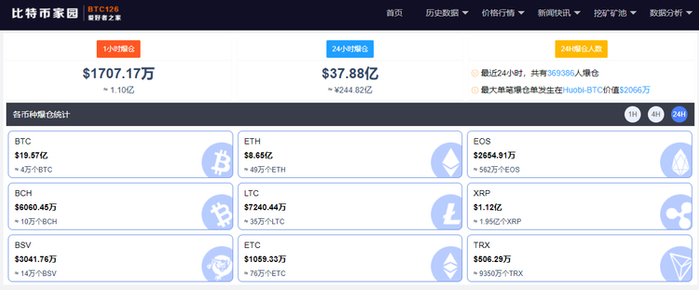 随着比特币的暴涨暴跌,投资者在经历悲喜的同时也面临极大的爆仓风险。据比特币家园网数据显示,全网24小时共有36.9万人爆仓,爆仓资金达到37.88亿美元(约合人民币244.81亿元)。