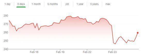 首当其冲的是汽车制造商特斯拉的股票。比特币的价格本周由 5.8 万美元跌至 4.7 万美元,跌幅超 20%。而特斯拉的股价在周一也出现了 8.6% 的下跌,这是该公司自去年 9 月以来的最大跌幅,市值缩水 152 亿美元。