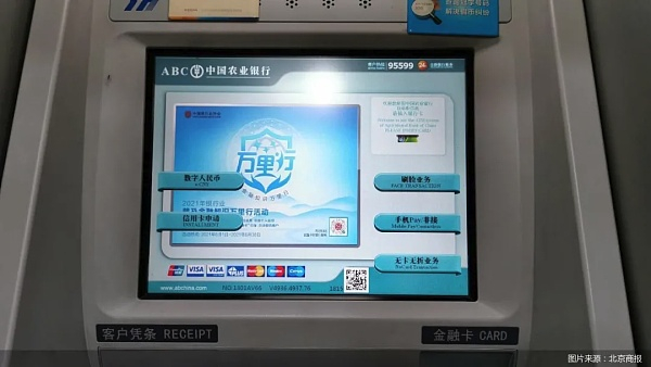 据北京商报报道,在北京地区走访银行网点时注意到,已有工商银行、农业银行等银行部分网点ATM机启用了数字人民币存取现功能。此外,据媒体报道,在上海,农业银行上海徐汇支行发现,部分ATM机上也已有数字人民币业务选项。