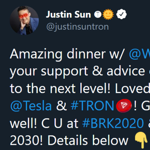 相信不少朋友对“三星+区块链”的最初和最深印象,还停留在孙宇晨2020年1月与巴菲特的餐会。当时孙宇晨向巴菲特赠予了一个内置1930830枚波场(数字代表巴菲特生日,巴菲特生于1930年8月30日)的三星 Galaxy Fold 手机,也就是该手机,让巴菲特一度“被动”成为波场持有者。