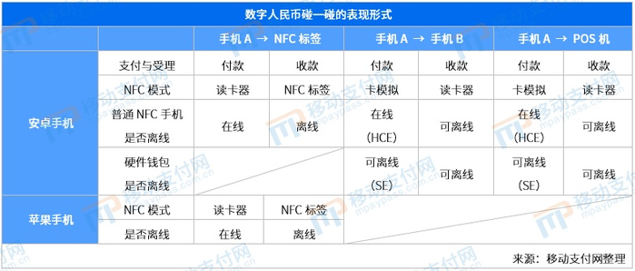 双离线的主要支付形式是通过“碰一碰”来达到的,不过“碰一碰”通常有多种不同的形式,作为数字人民币的一项收付款功能,其基于NFC实现终端与终端之间、终端与标签之间的信息交互,从而达到收付款的目的。