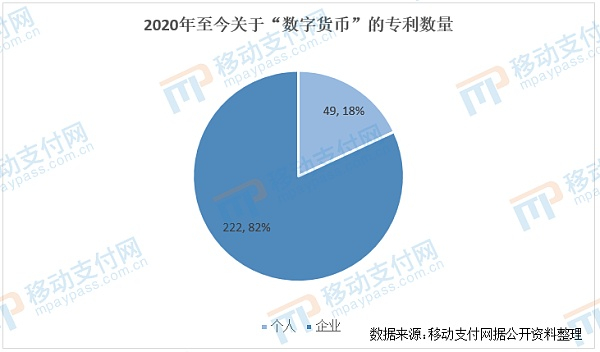 据移动支付网统计,2020年至今共计有271个关于“数字货币”的专利(包括数研所的其它专利)申请发布,不到两年的时间专利申请数量甚至超过了2016年-2019年的总数。其中个人申请专利49个,企业申请专利共222个,占比超过8成。其中还包括移动、联通、电信等运营商以及银行、支付宝等机构。