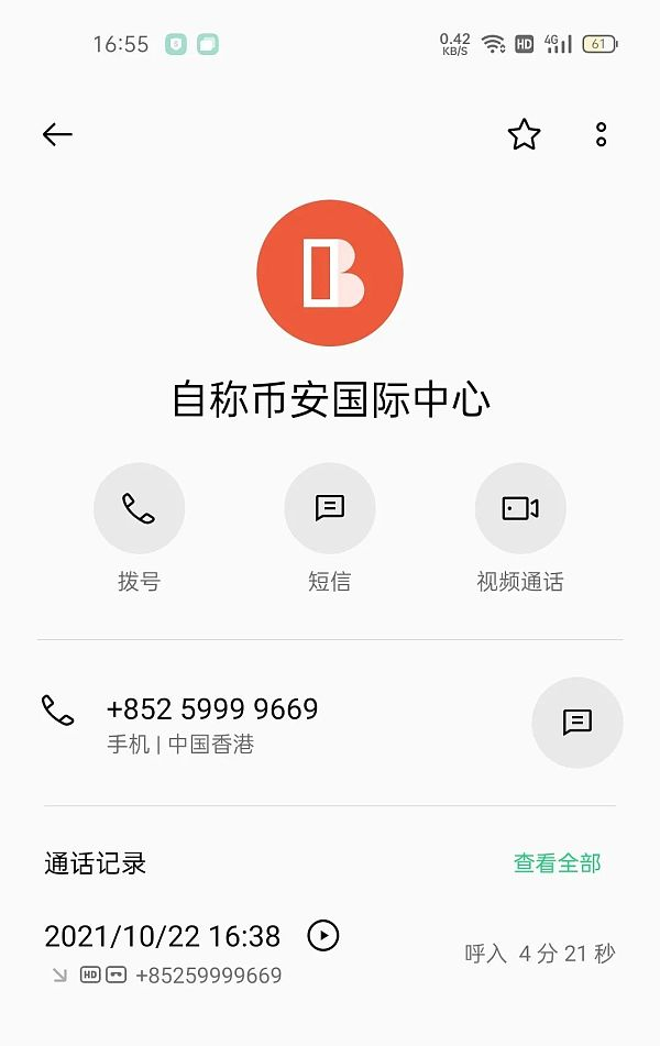自称是币安国际部的电话。电话那头的币安客服不仅说出了阿豪的全名,还道出了阿豪前几次在币安的操作记录,“您是不是在10月3号、10月7号和10月14号有登录过平台,分别进行了xxx交易”,阿豪赶紧打开币安APP查看,确实如此。