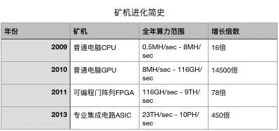 从2009年比特币诞生以来,挖矿的机器经历了几个阶段: