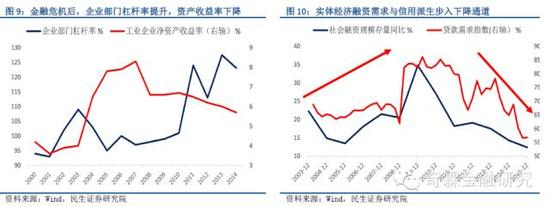金融危机后,在各国央行量化宽松措施、发达国家居民部门去杠杆背景下,外需逐渐萎缩,基建和地产的内需替代作用被强化,用内部加杠杠(强化土地抵押融资的发展模式)替代外需成为保持经济增长的关键所在,导致企业部门资产负债表迅速扩张。